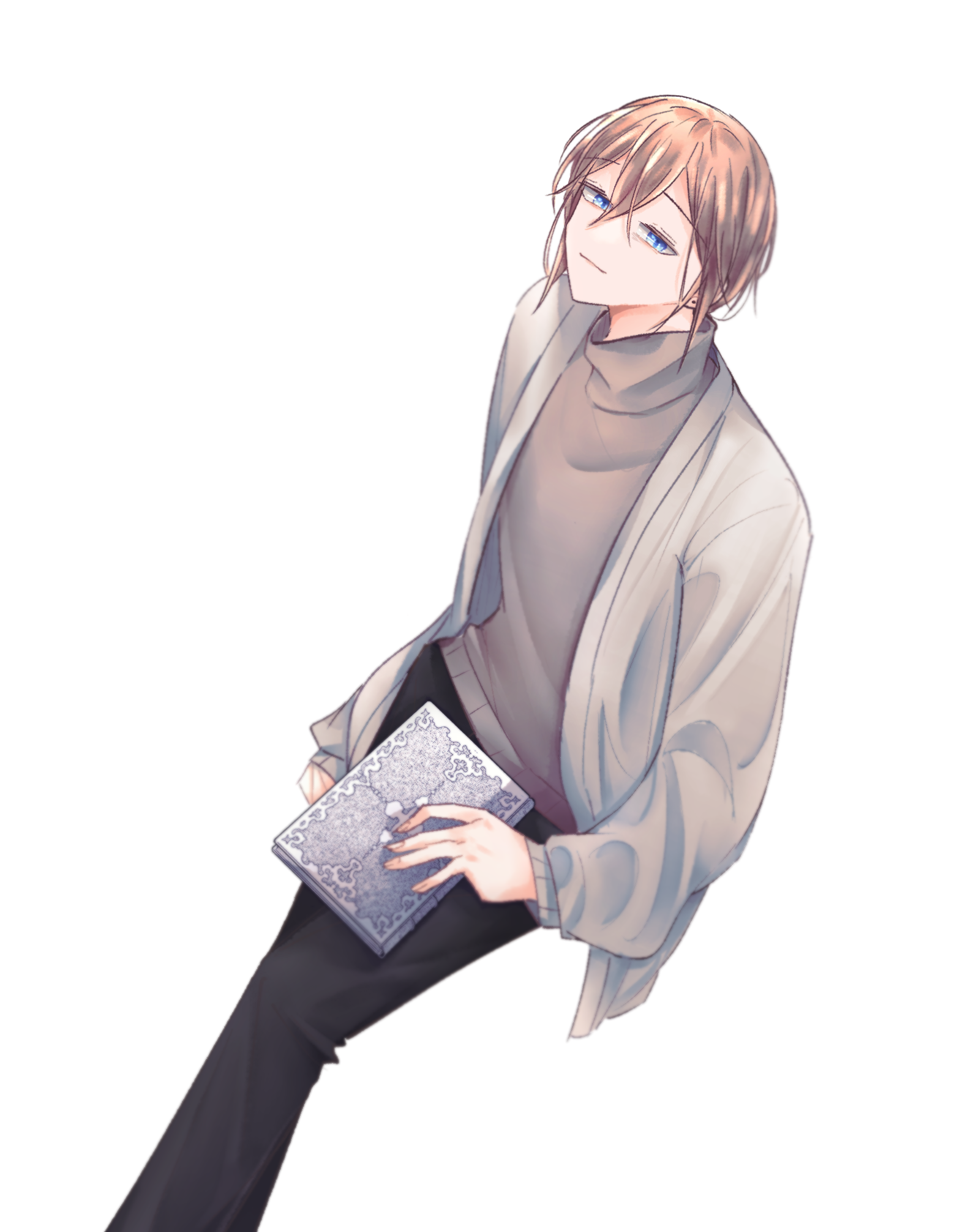 가을 하늘을 닮은 연푸른색 눈동자. 갈회색 목폴라 니트와 검은 바지.